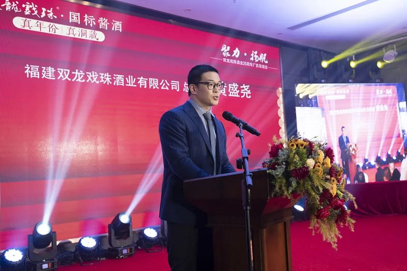 雙龍戲珠酒業(yè)總經(jīng)理黃盛堯代表雙龍戲珠酒業(yè)全體員工,向出席答謝宴的各位來賓、經(jīng)銷商表示熱烈的歡迎,向一路相伴和支持的朋友們表示由衷的感謝。