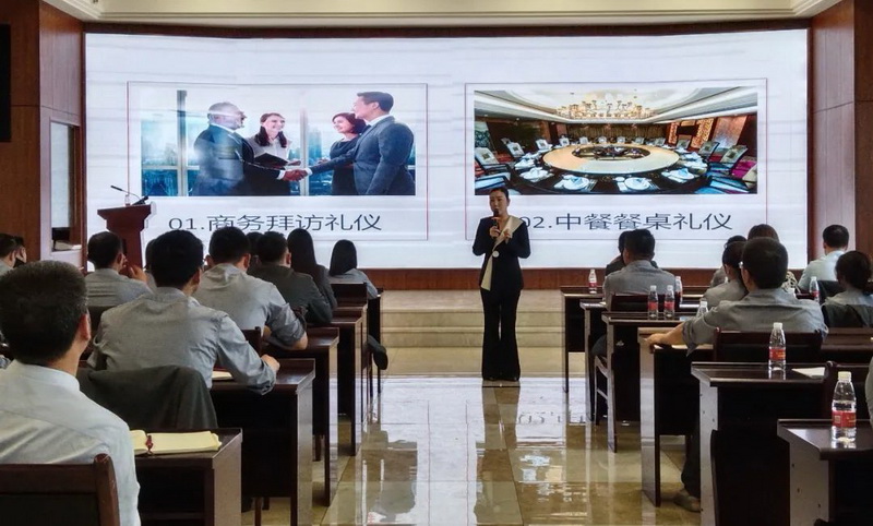在商務(wù)禮儀培訓(xùn)課上,李麗婷老師圍繞商務(wù)拜訪禮儀和中餐餐桌禮儀進(jìn)行了細(xì)致的講解;并以實(shí)際場景、妝容穿著等,對職場中的文明禮儀進(jìn)行解說,使大家對商務(wù)禮儀有了更深入的了解。