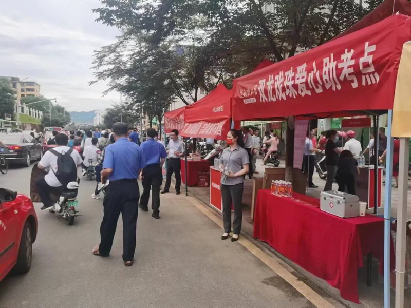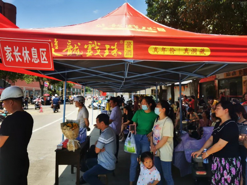 雙龍戲珠酒業(yè)早早來到了高考點(diǎn),在考點(diǎn)外搭建“愛心助考”服務(wù)站,拉起橫幅標(biāo)語為考生們加油鼓勁,并準(zhǔn)備了免費(fèi)礦泉水、一次性口罩、應(yīng)急藥品等物資,供考生和家長免費(fèi)領(lǐng)取。