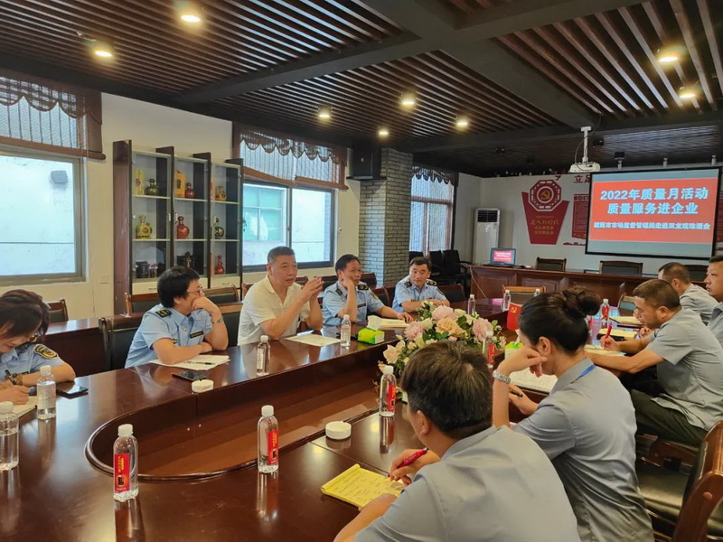 為持續(xù)優(yōu)化營商環(huán)境,真招實(shí)策助力企業(yè)發(fā)展,9月7日下午,建甌市場監(jiān)督管理局甘霆副局長率隊(duì)到訪雙龍戲珠酒業(yè)開展普法宣傳座談會。在雙龍戲珠酒業(yè)副總經(jīng)理吳小如等領(lǐng)導(dǎo)陪同下,參觀了東南醬酒文化館、酒史館、釀造車間,聽取了雙龍戲珠酒業(yè)在市場營銷、品牌建設(shè)等方面的工作介紹,詳細(xì)了解企業(yè)的總體發(fā)展情況。