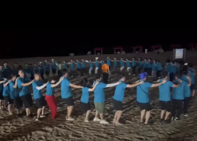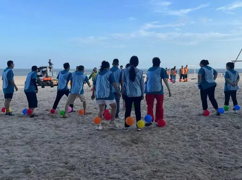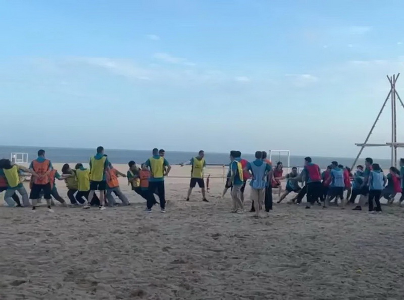 6月19日,團隊一起游覽崇武古城、惠女民俗風(fēng)情園等秀美風(fēng)景。下午的拓展活動在遼闊的海灘上進行,“舞王爭霸”、“飛盤大賽”、“踩氣球”、“拔河”等活動接連上演,分組比賽的方式增進了團隊成員之間的信任感及凝聚力。
