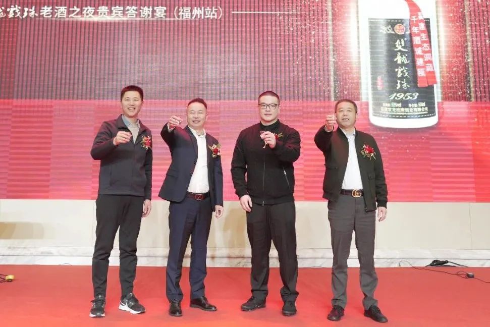 以酒為媒,以酒會(huì)友!12月26日-27日,以“品質(zhì)至上 唯有老酒”為主題的雙龍戲珠老酒之夜貴賓答謝宴(福州站)在福州梅園國(guó)際大酒店3樓連開兩場(chǎng)。福建雙龍戲珠酒業(yè)有限公司總經(jīng)理黃盛堯、福州天福榮貿(mào)易有限公司總經(jīng)理陳建榮、福州榕誠(chéng)久惠酒業(yè)有限公司總經(jīng)理葉榮出席活動(dòng)并致辭。