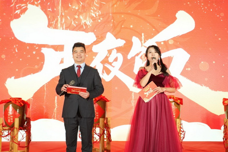 雙龍戲珠酒業(yè)董事長黃德鋒在致辭中對全體雙龍人一年來的辛勤付出表示感謝,并向大家致以新年的美好祝愿。雙龍戲珠酒業(yè)發(fā)展到現(xiàn)在是全體員工一起努力的結(jié)果,今晚在桐源基地舉辦年夜飯活動,與大家一同見證雙龍戲珠發(fā)展的成果。