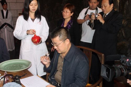 2011年5月25日,由福建省輕工業(yè)聯(lián)合會(huì)、四川省釀酒研究所、福建省白酒研發(fā)中心共同主辦的“雙龍戲珠酒專家鑒評會(huì)”在我司舉行。邀請專家有“中國白酒專家組副組長、江蘇省釀酒協(xié)會(huì)會(huì)長、白酒界泰斗沈怡方”;“四川省釀酒協(xié)會(huì)副會(huì)長陳吉?!?;“四川省釀酒研究所所長吳亞東”;“ 四川省釀酒研究所副所長、國家青年白酒專家楊官榮”;“瀘州老窖副總經(jīng)理、國窖1573酒體設(shè)計(jì)者張宿義”;郎酒集團(tuán)酒體設(shè)計(jì)中心副主任程偉“;共同對雙龍戲珠酒進(jìn)行鑒評。