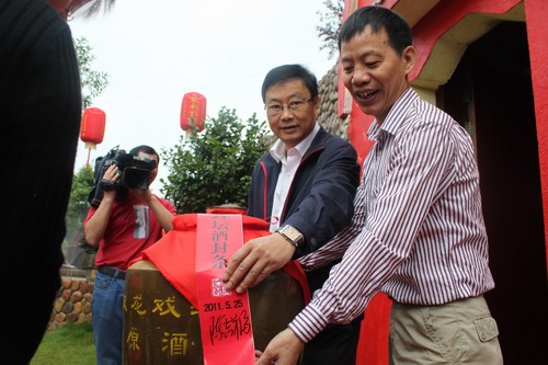 2011年5月25日,由“中國(guó)白酒專家組副組長(zhǎng)、江蘇省釀酒協(xié)會(huì)會(huì)長(zhǎng)、白酒界泰斗沈怡方”;“四川省釀酒協(xié)會(huì)副會(huì)長(zhǎng)陳吉?!?;“四川省釀酒研究所所長(zhǎng)吳亞?wèn)|”;“ 四川省釀酒研究所副所長(zhǎng)、國(guó)家青年白酒專家楊官榮”;“瀘州老窖副總經(jīng)理、國(guó)窖1573酒體設(shè)計(jì)者張宿義”;郎酒集團(tuán)酒體設(shè)計(jì)中心副主任程偉“;對(duì)雙龍戲珠酒進(jìn)行鑒評(píng)后,在公司雙龍洞前為雙龍戲珠酒進(jìn)行封壇洞藏。