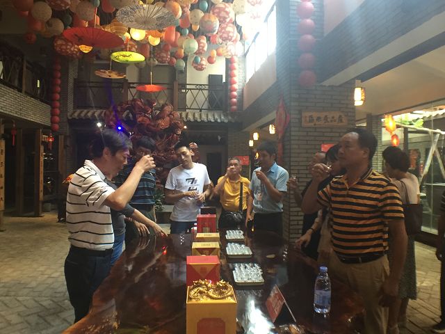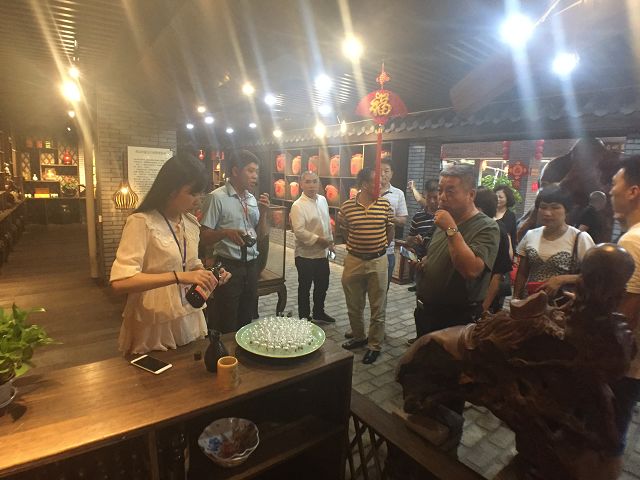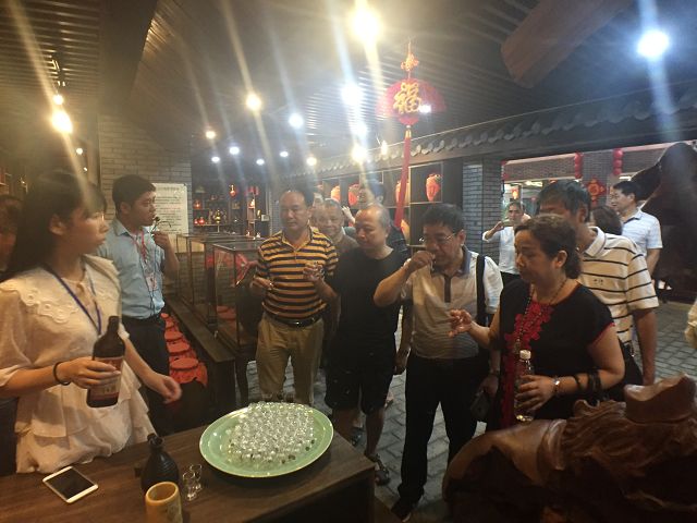 南平市青商會一行人在公司總經(jīng)理黃盛堯陪同下,相繼參觀了公司的產(chǎn)品展示大廳,白酒傳統(tǒng)釀制工藝,以及貯酒山洞——雙龍洞,與會嘉賓還品飲了雙龍戲珠白酒。
