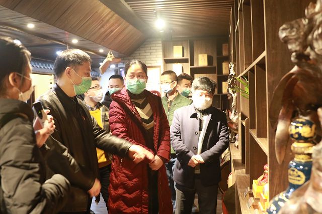 在雙龍戲珠酒業(yè)有限公司董事長黃德鋒的陪同下,陳建新一行依次參觀走訪了雙龍戲珠酒廠品牌展示大廳、釀造車間以及貯酒山洞雙龍洞。