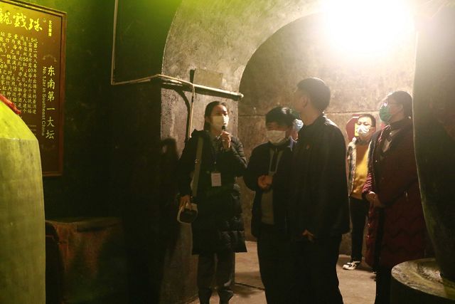 在雙龍洞,面對洞內(nèi)陳列著的從酒廠成立至今的雙龍戲珠酒以及撲鼻而來的濃郁的酒香味,領(lǐng)導(dǎo)們不約而同地發(fā)出了由衷的贊嘆。