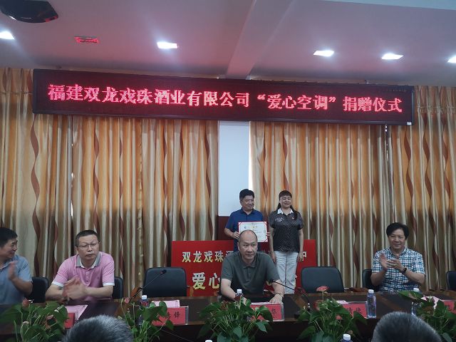 2020年6月12日,福建雙龍戲珠酒業(yè)有限公司向建甌一中捐贈100臺空調(diào),用于舊校區(qū)教室改造升級,讓莘莘學(xué)子在清涼一夏的舒適環(huán)境中好好學(xué)習(xí)。愛心捐贈活動在建甌一中小會議室隆重舉行。建甌市委常委宣傳部部長陳力華、建甌市副市長池清使、建甌市教育局領(lǐng)導(dǎo)、福建雙龍戲珠酒業(yè)有限公司董事長黃德鋒、建甌一中黨委委員、年段長和學(xué)生代表參加了儀式。