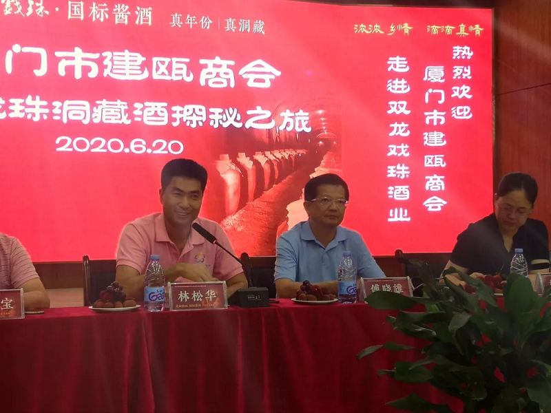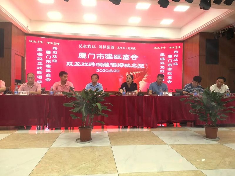 2020年6月20日,福建雙龍戲珠酒業(yè)有限公司邀請廈門市建甌商會林松華會長等一行30多位企業(yè)家到我司參觀,開展“雙龍戲珠洞藏酒探秘之旅”活動。此次回鄉(xiāng)之旅受到建甌市委、市政府的高度重視,建甌市委常委、市委副書記楊鑾,市委常委、統(tǒng)戰(zhàn)部部長傅曉雄,建甌市人大副主任,市委辦主任葉華等領(lǐng)導(dǎo)出席會議并進(jìn)行了深入的座談交流。